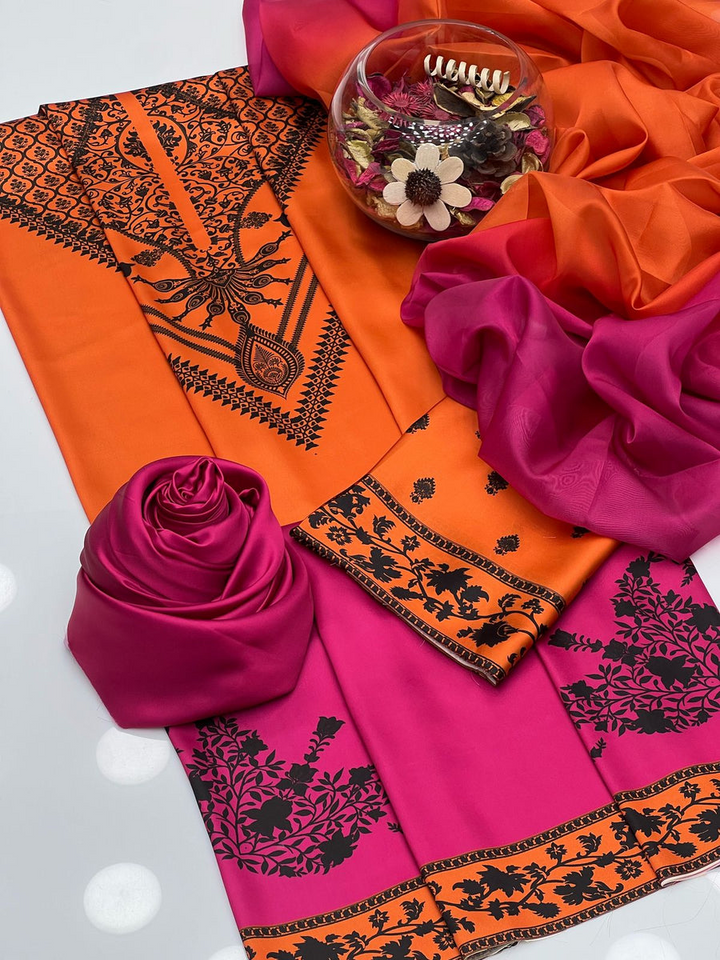 DIGITAL PRINT 3PC SILK UNSTITCHED SUIT 24